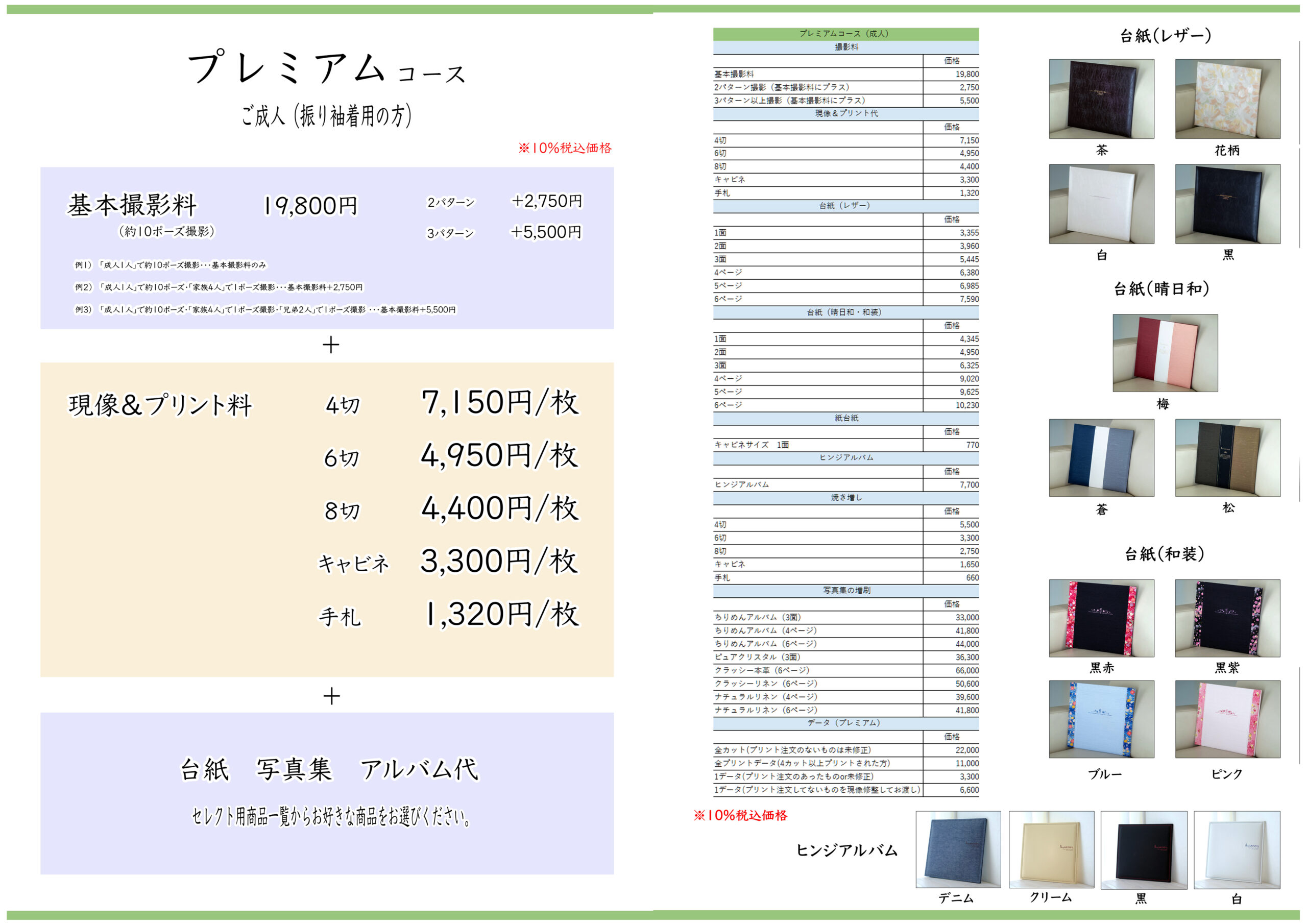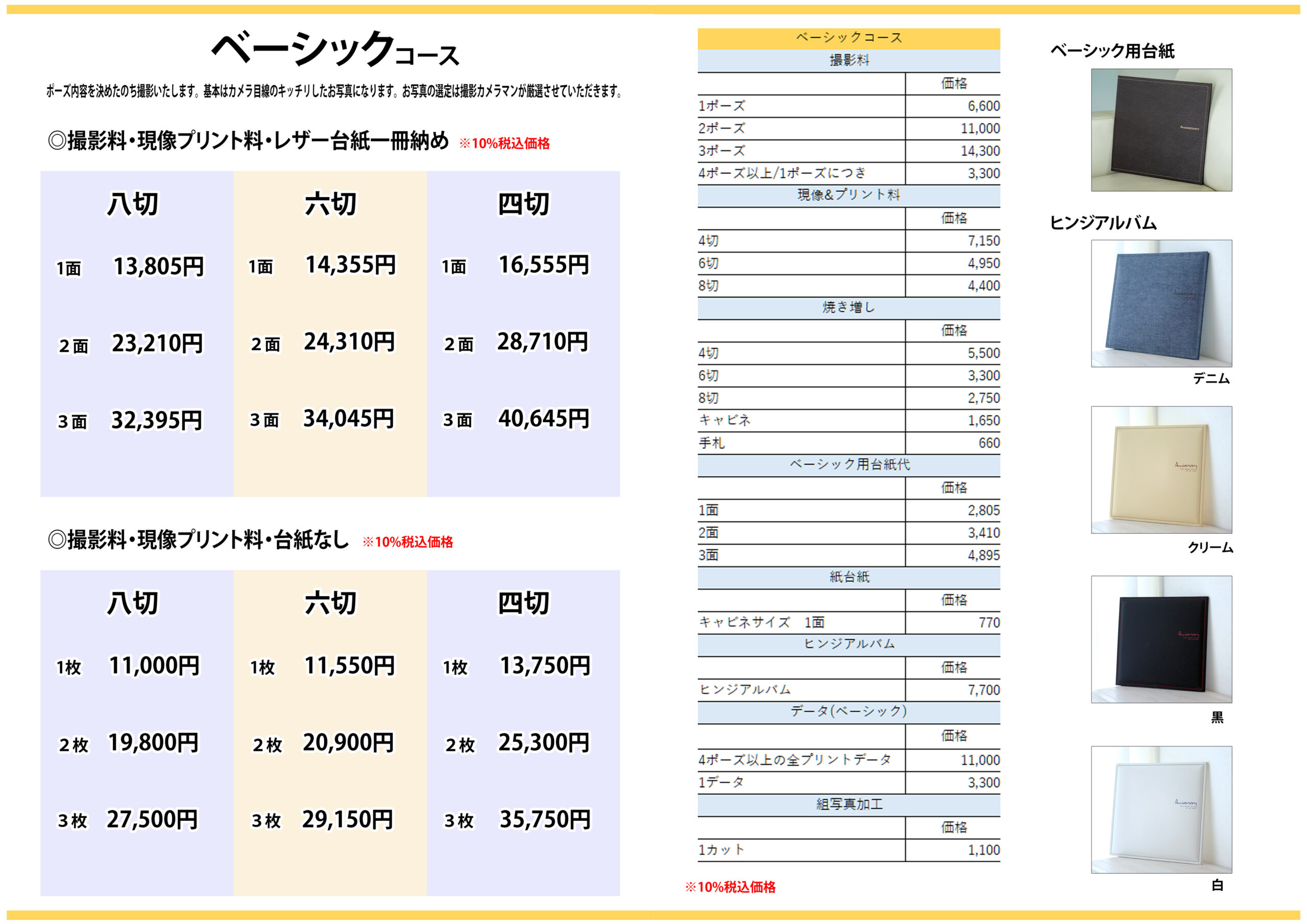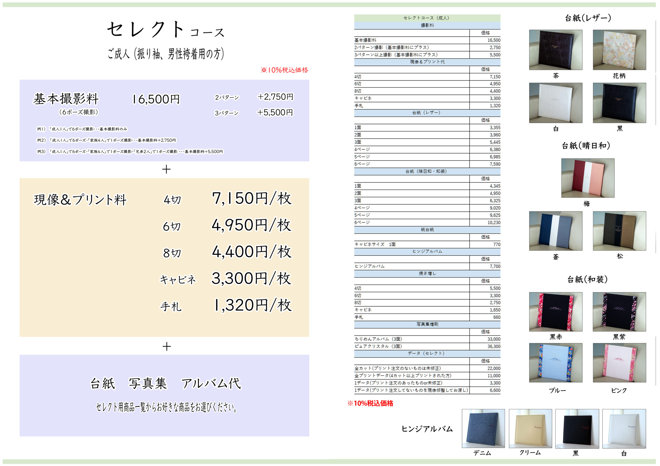※撮影料・現像プリント料・レザー台紙一冊納め
